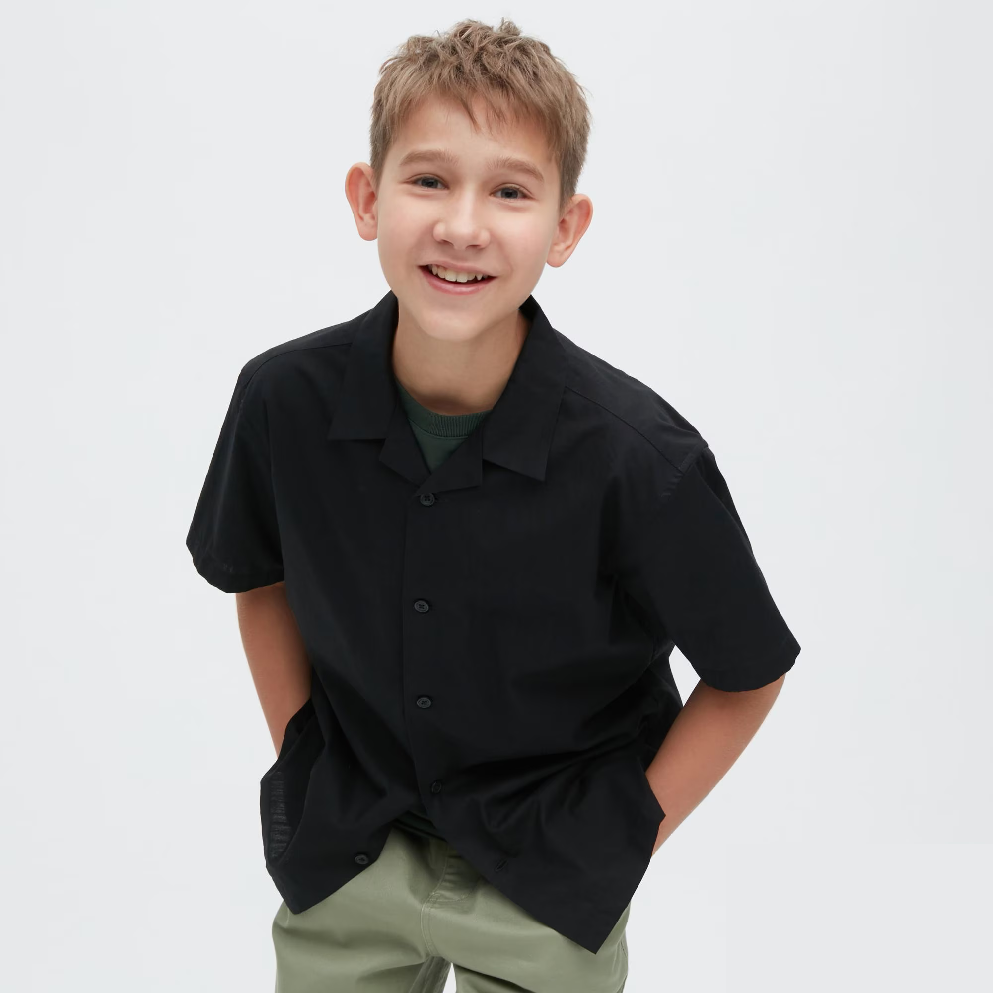 - KIDS Cotton Open Collar Short Sleeve Shirt