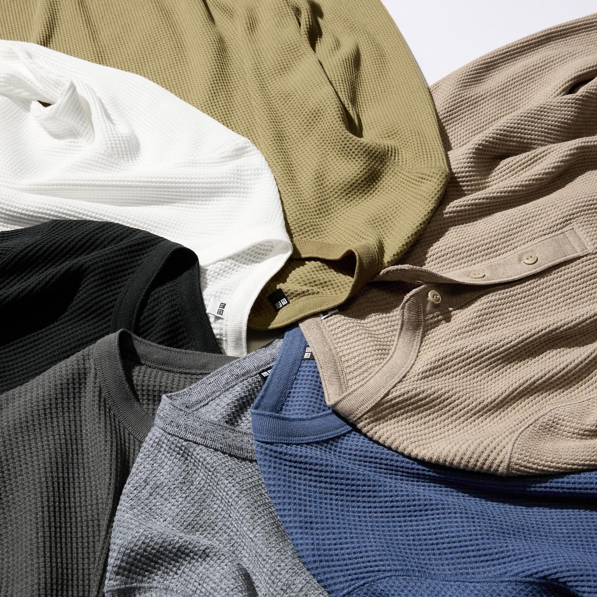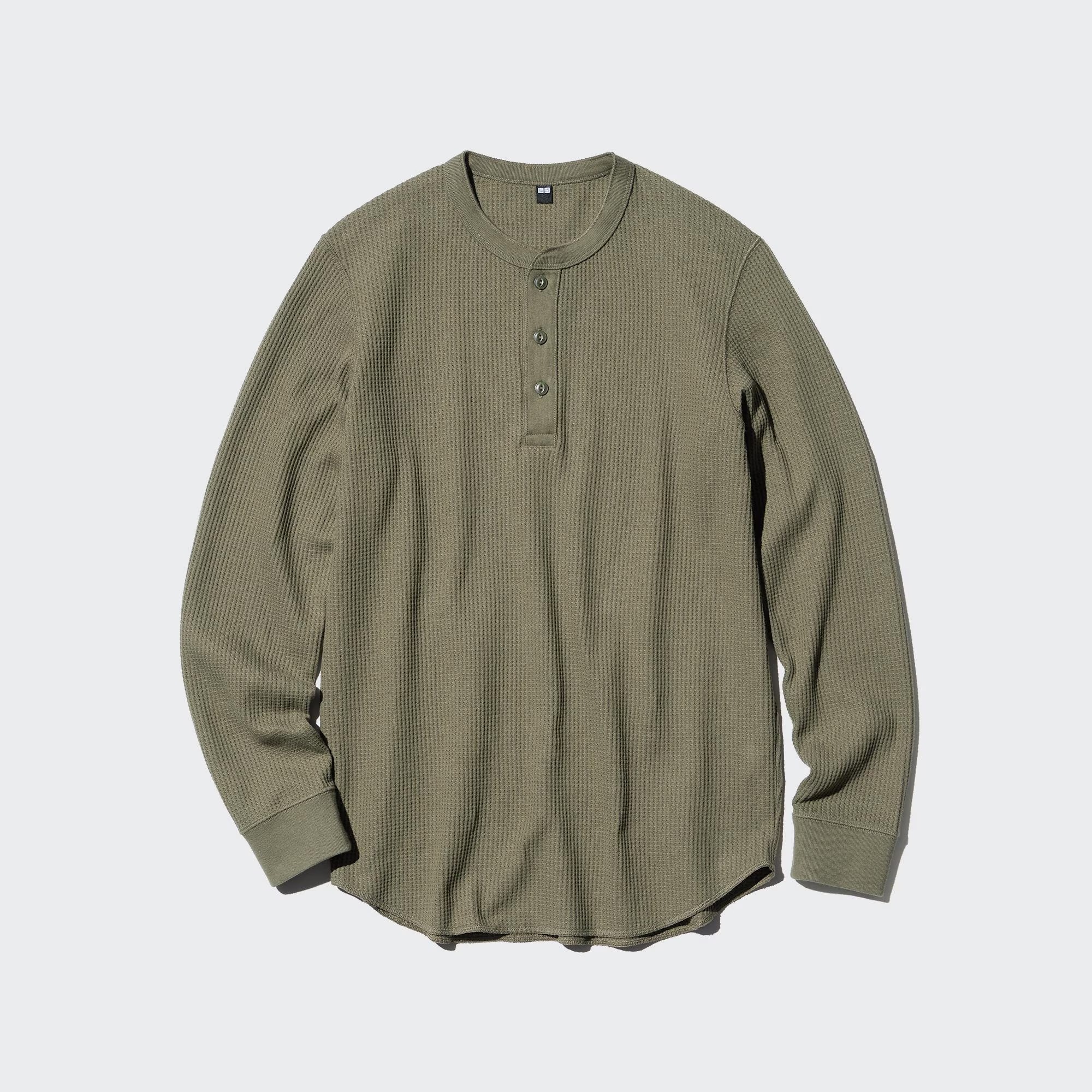 - WAFFLE HENLEY NECK LONG SLEEVE T-SHIRT