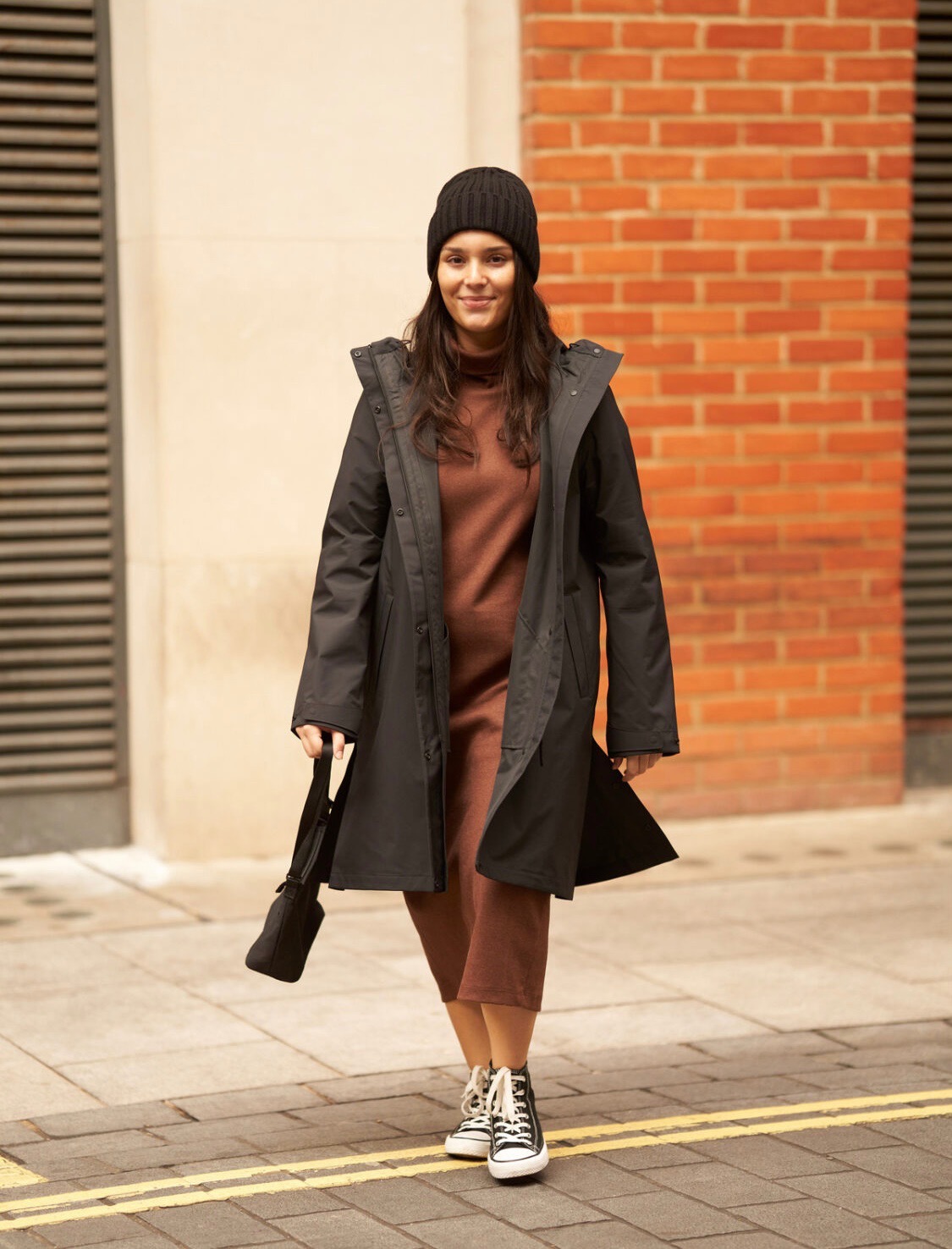 - Brushed Jersey Turtleneck Long-Sleeve Dress