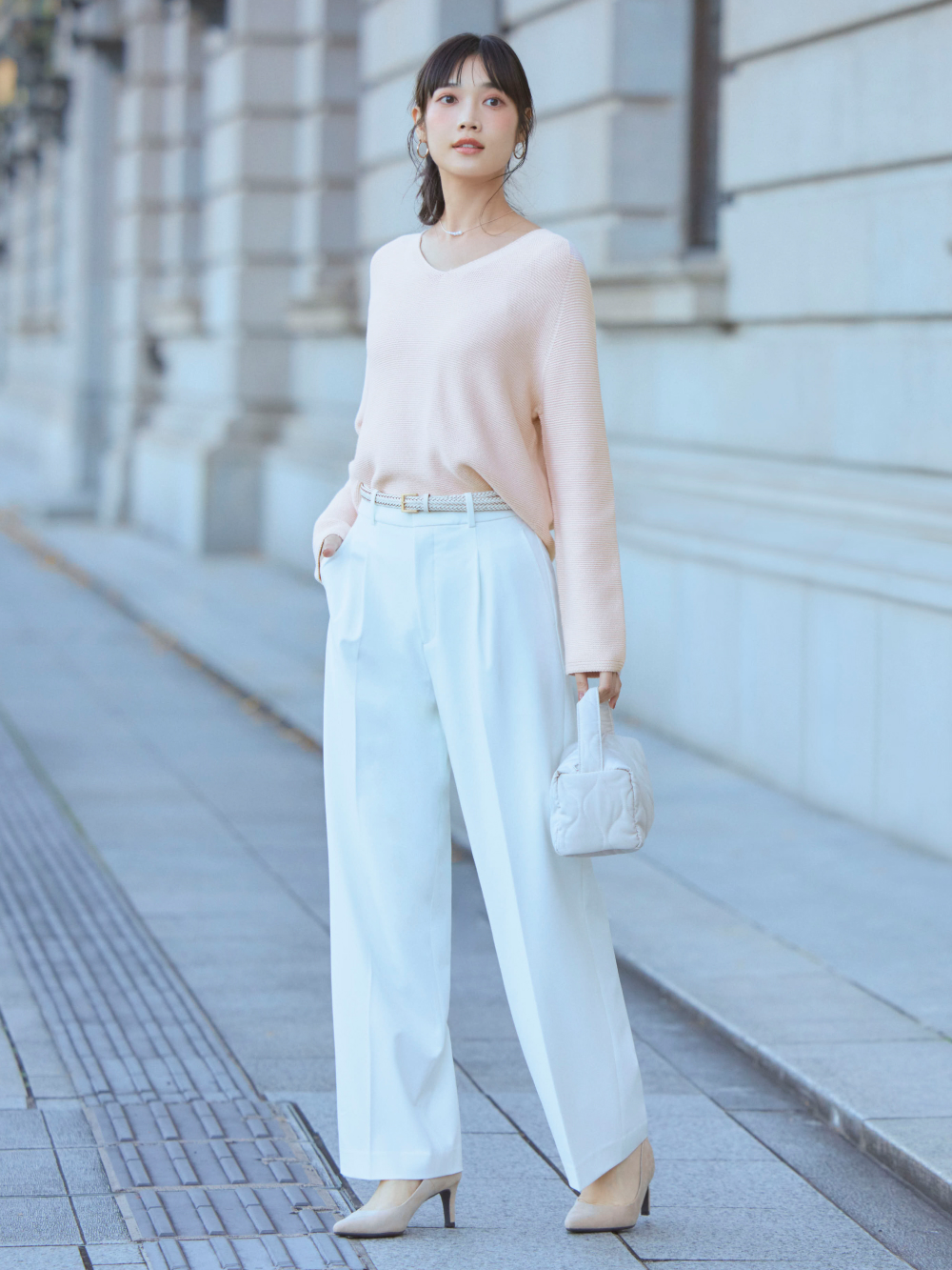 • 3D Knit Seamless Cotton Relaxed V Neck Jumper