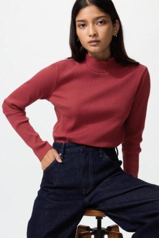 - Ribbed High Neck T-Shirt (Long Sleeve)