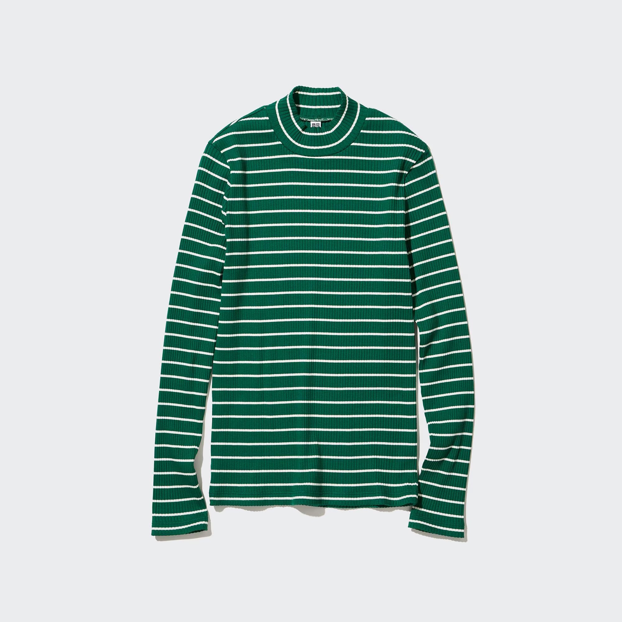 • Ribbed Striped High Neck Long Sleeve T-Shirt