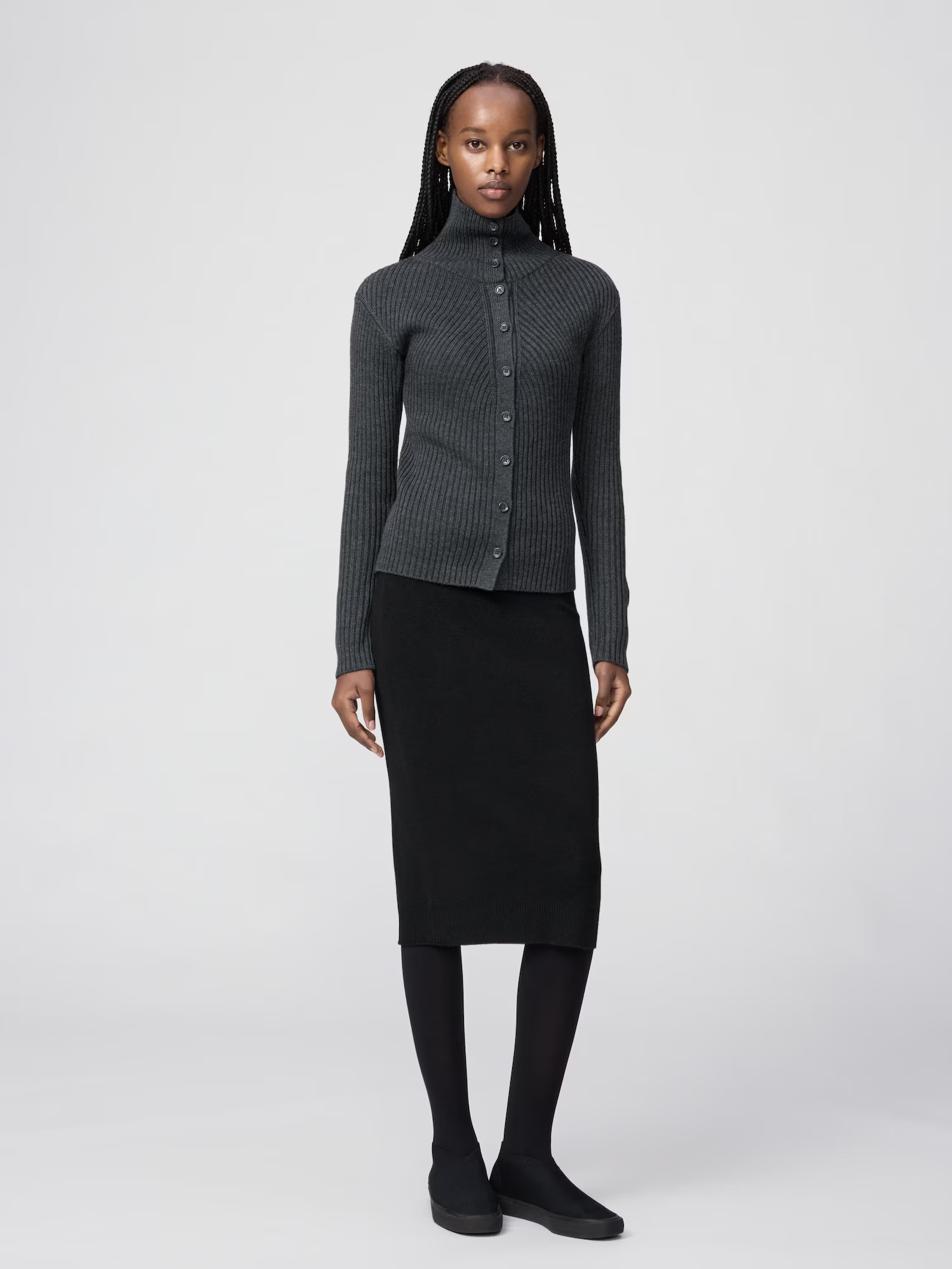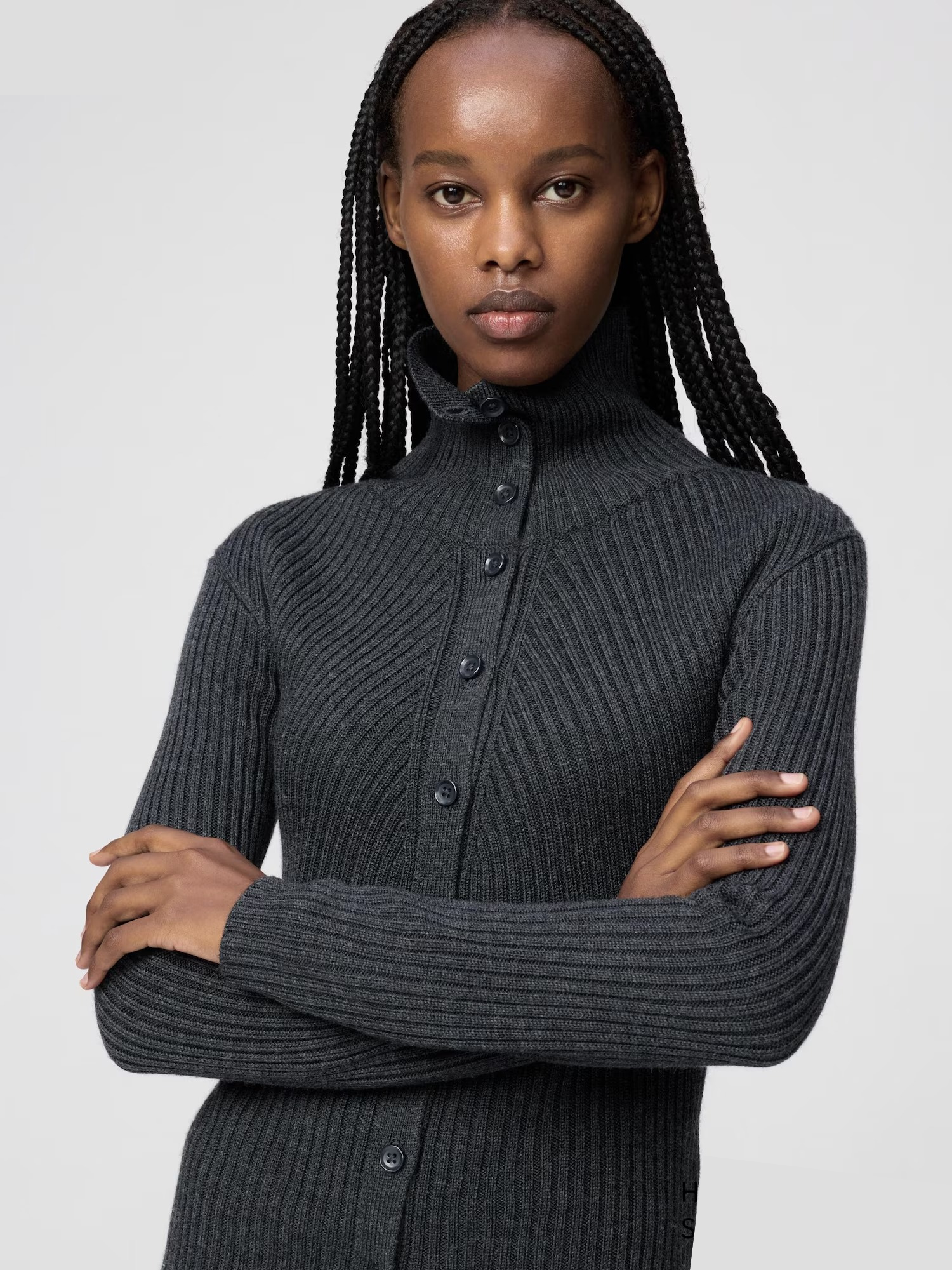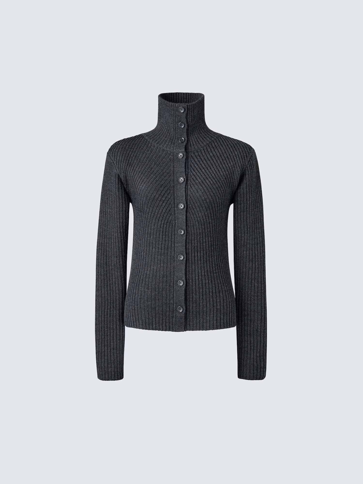 - Merino Blend High Neck Cardigan