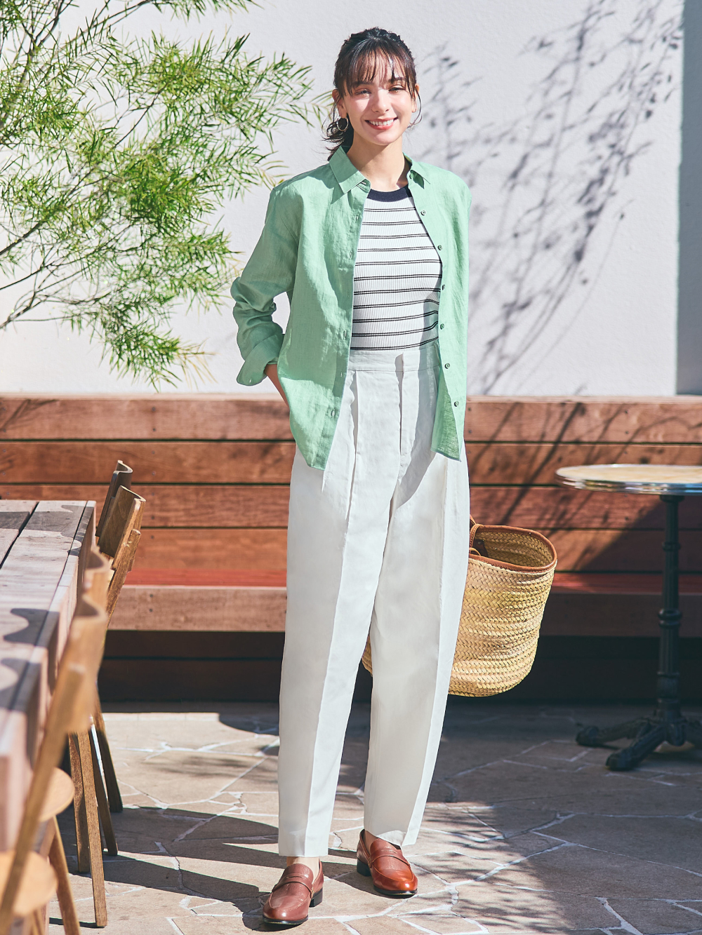 - Linen Blend Barrel Leg Trousers
